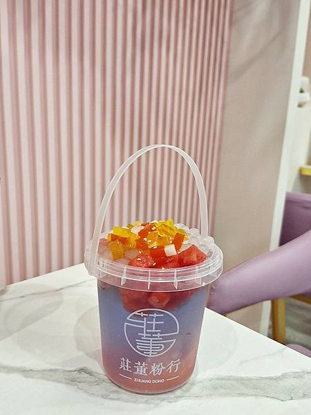 上面有放上爆珠、椰果、西瓜等,我們升級桶裝再加15元
